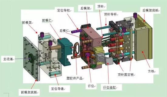 最后是頂出機構。模具注塑好后的塑料件基本上留在型芯上,這時(shí)候就需要頂出機構來(lái)頂出塑料件。頂出機構通常是頂針,頂板或者頂塊之類(lèi)的。